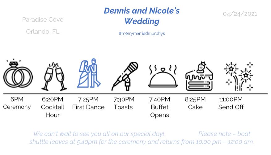 11:00pm - Boat exit - guests sent to see the bride and groom off